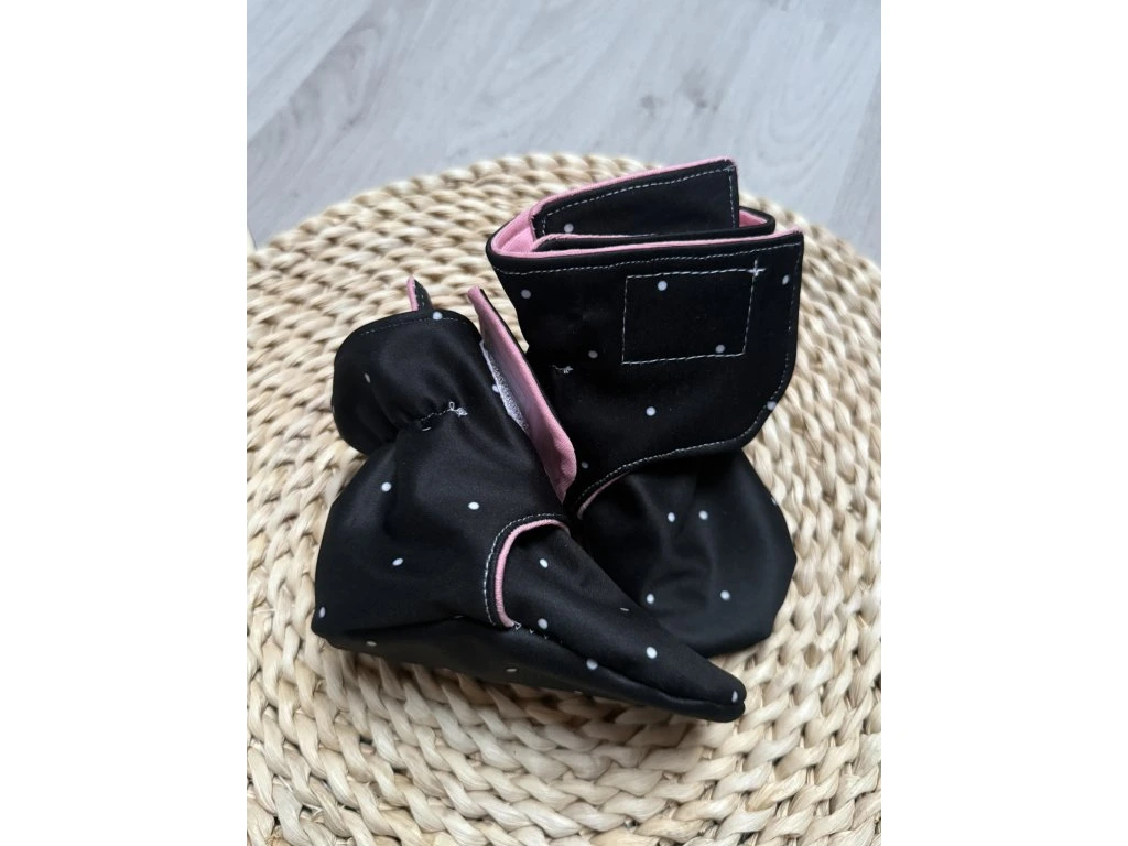 Díky měkkému vnitřnímu materiálu jsou capáčky příjemné na dotek a šetrné k citlivé dětské pokožce. Praktický střih zajistí, že dobře drží na nožičce a jen tak nesklouznou.
