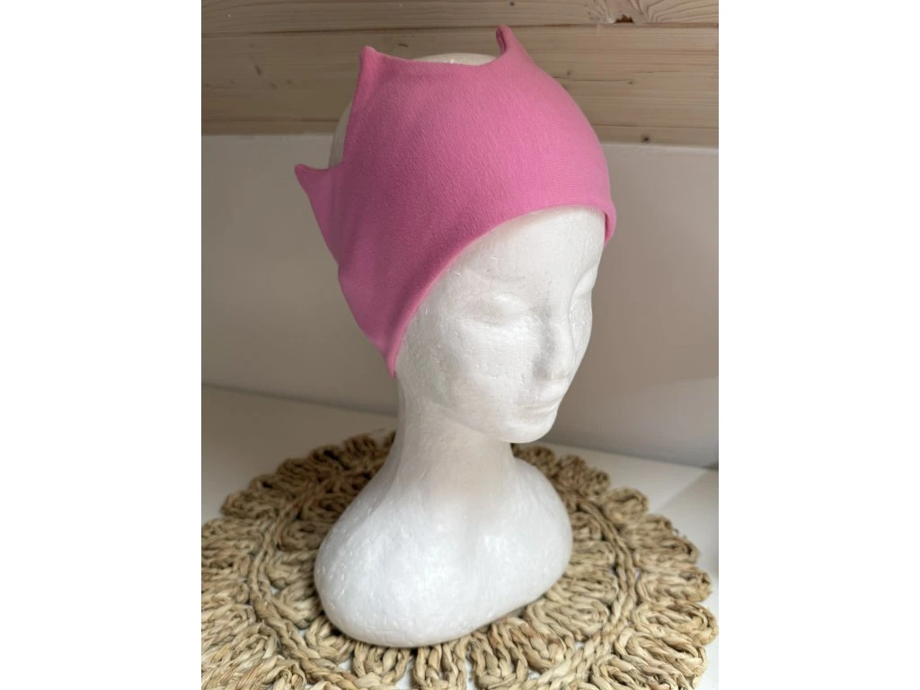 Čelenka je ušitá z příjemné a pružné teplákoviny, která se dobře přizpůsobí hlavičce a pohodlně drží na svém místě. Díky promyšlenému střihu cípky krásně drží tvar a nepadají, takže čelenka vypadá perfektně po celý den.