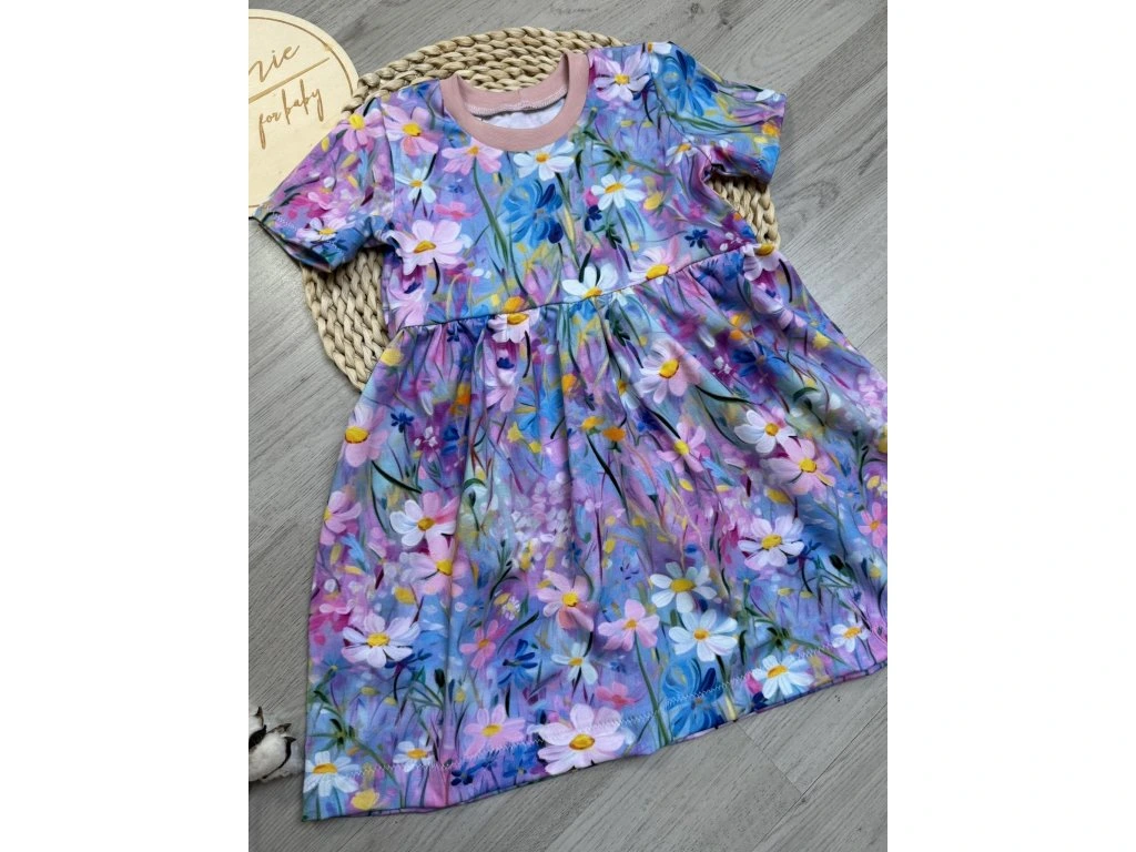 Roztomilé dětské šaty s jemným květinovým vzorem jsou ideální volbou pro každodenní nošení i slavnostnější příležitosti. Krátké rukávy zajišťují pohodlí během teplejších dnů a nařasený pas dodává šatům krásný, dívčí vzhled. Lehký a příjemný materiál umožňuje volný pohyb, takže se v nich vaše malá parádnice bude cítit pohodlně po celý den.