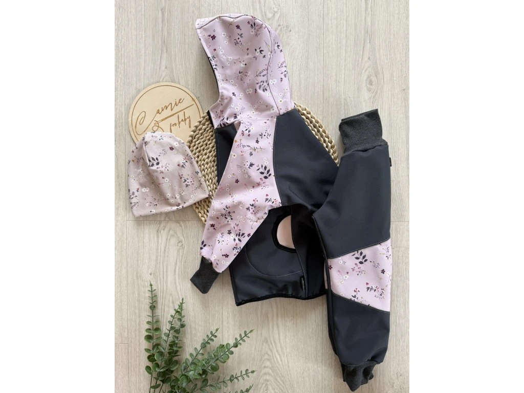 Softshellová souprava drobné kvítí + tmavě šedá