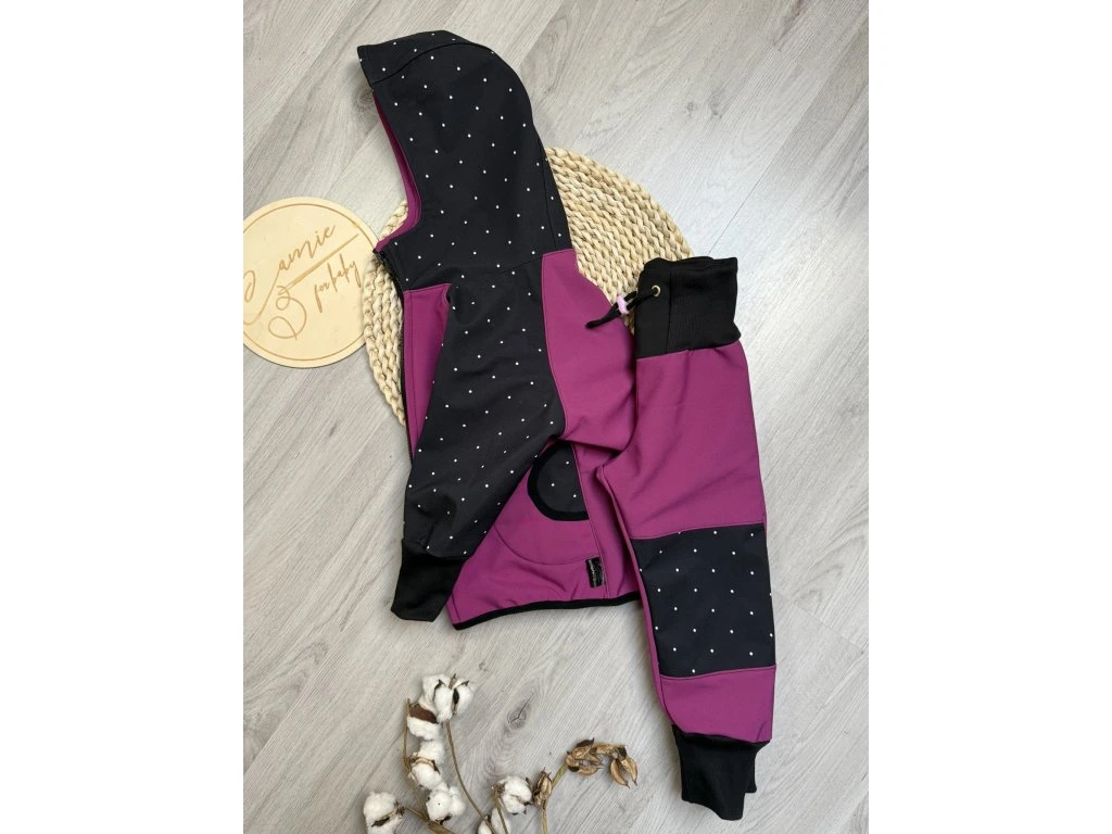 Softshellová souprava puntíky a ostružinová